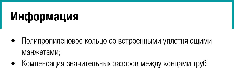 Быстрое и простое сочленение подземных дренажных труб. Допустим значительный зазор между торцами труб. Кольцо DCS, для соединений без защиты от продольного перемещения, является универсальным решением в различных областях применения.