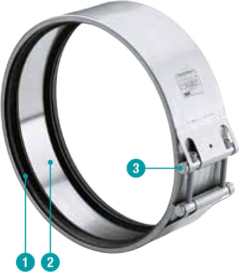 NORMACONNECT® FLEX 3 отличается более широкой лентой и используется для быстрого и надежного соединения металлических и пластмассовых труб, не требующих сопротивления осевой нагрузке.
