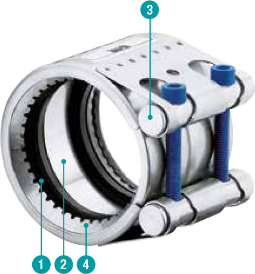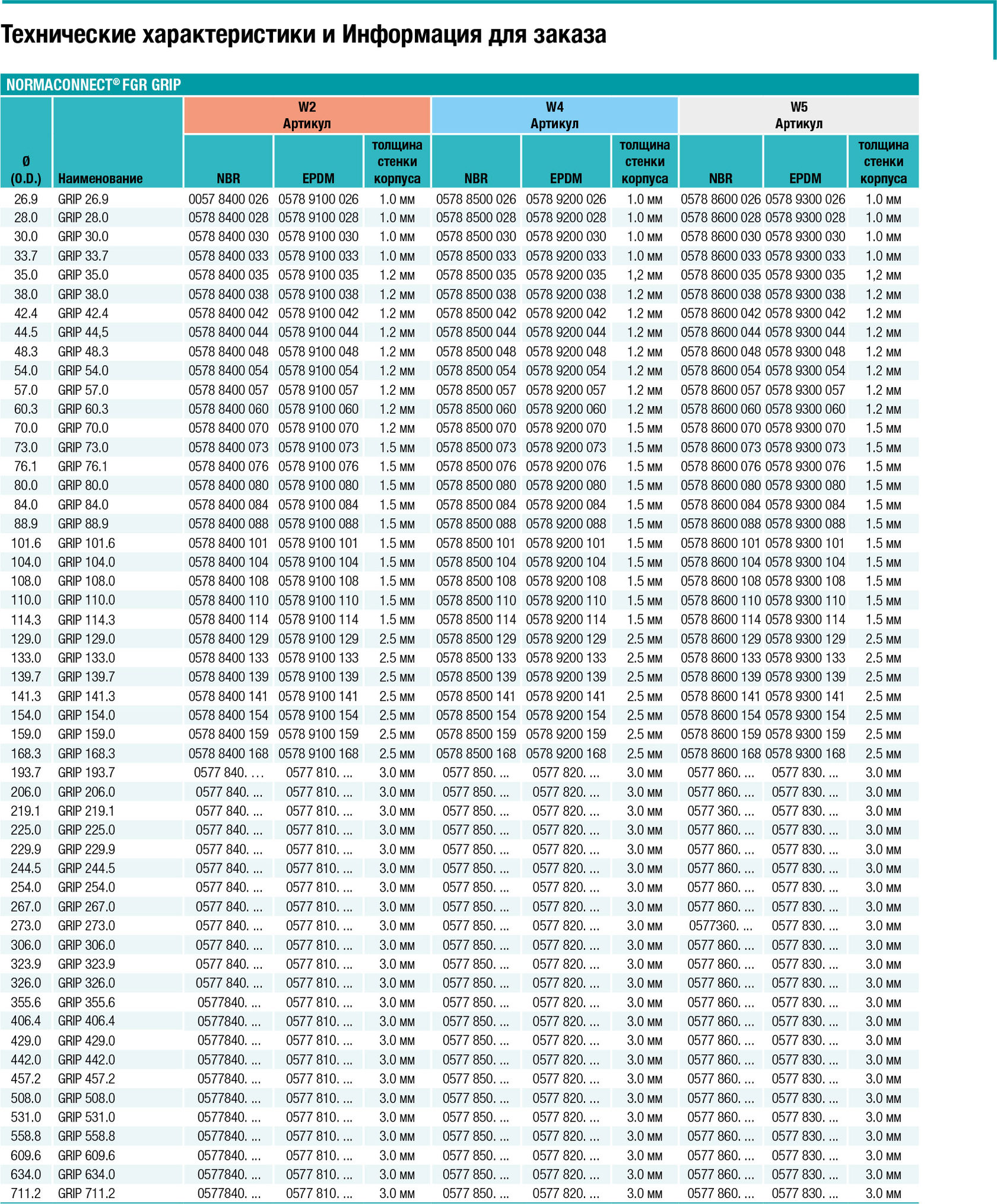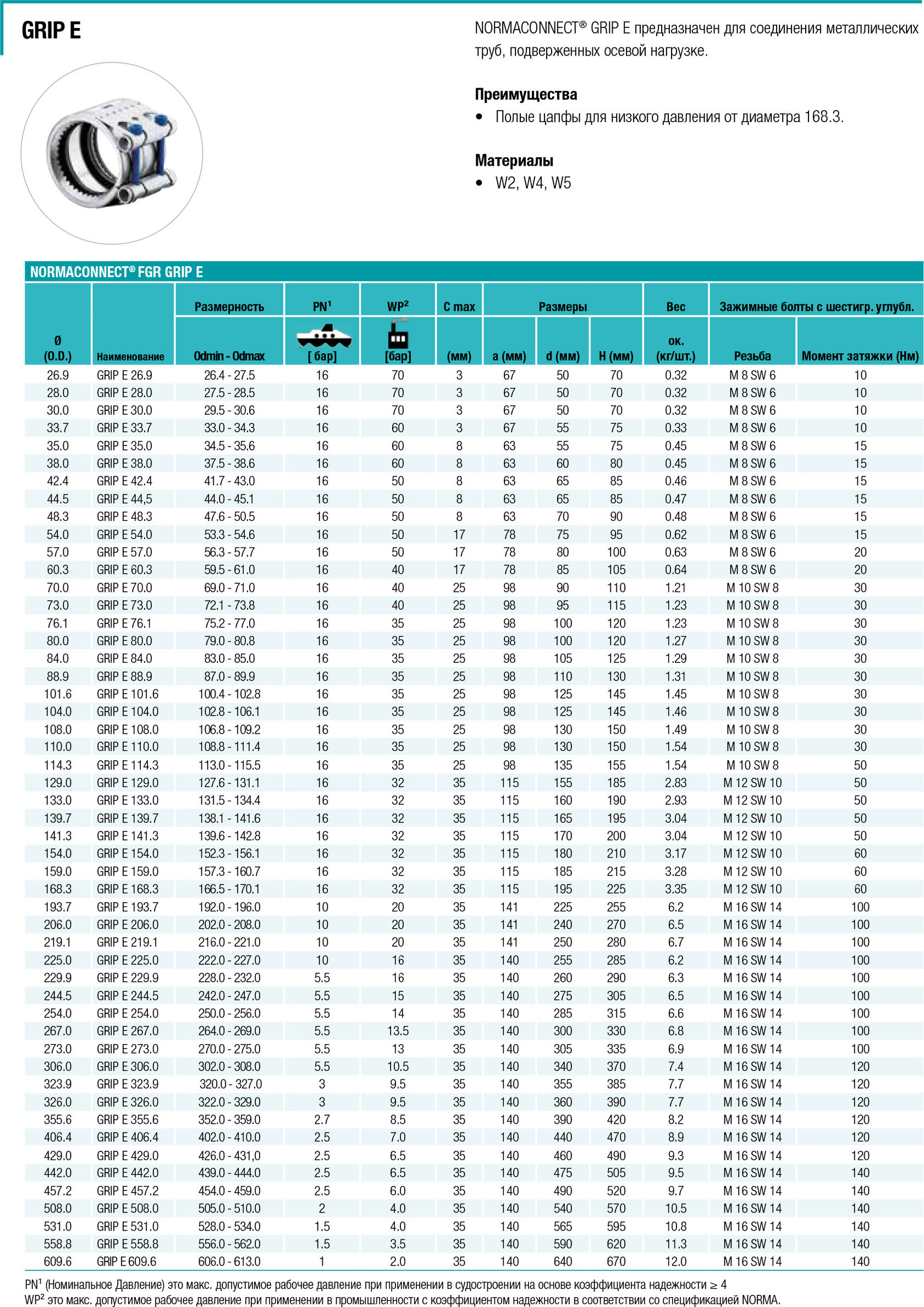 NORMACONNECT® GRIP/GRIP E предназначен для соединения металлических труб, требующих сопротивления осевой нагрузке. Анкерное кольцо с коническим профилем зубьев зацепляется с поверхностью труб (из стали, нержавеющей стали или чугуна) и обеспечивает надежную и прочную фиксацию. Благодаря специальной конструкции соединитель особенно устойчив большим вибрационным нагрузкам.